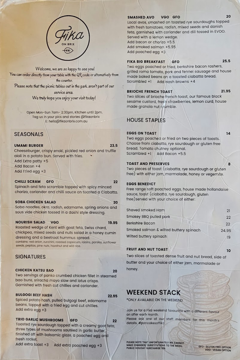 Whether you’re looking for a cozy indoor space or a vibrant outdoor area, Fika on Brix ticks all the boxes. Don’t miss out on this hidden gem—where great coffee meets delectable cuisine!